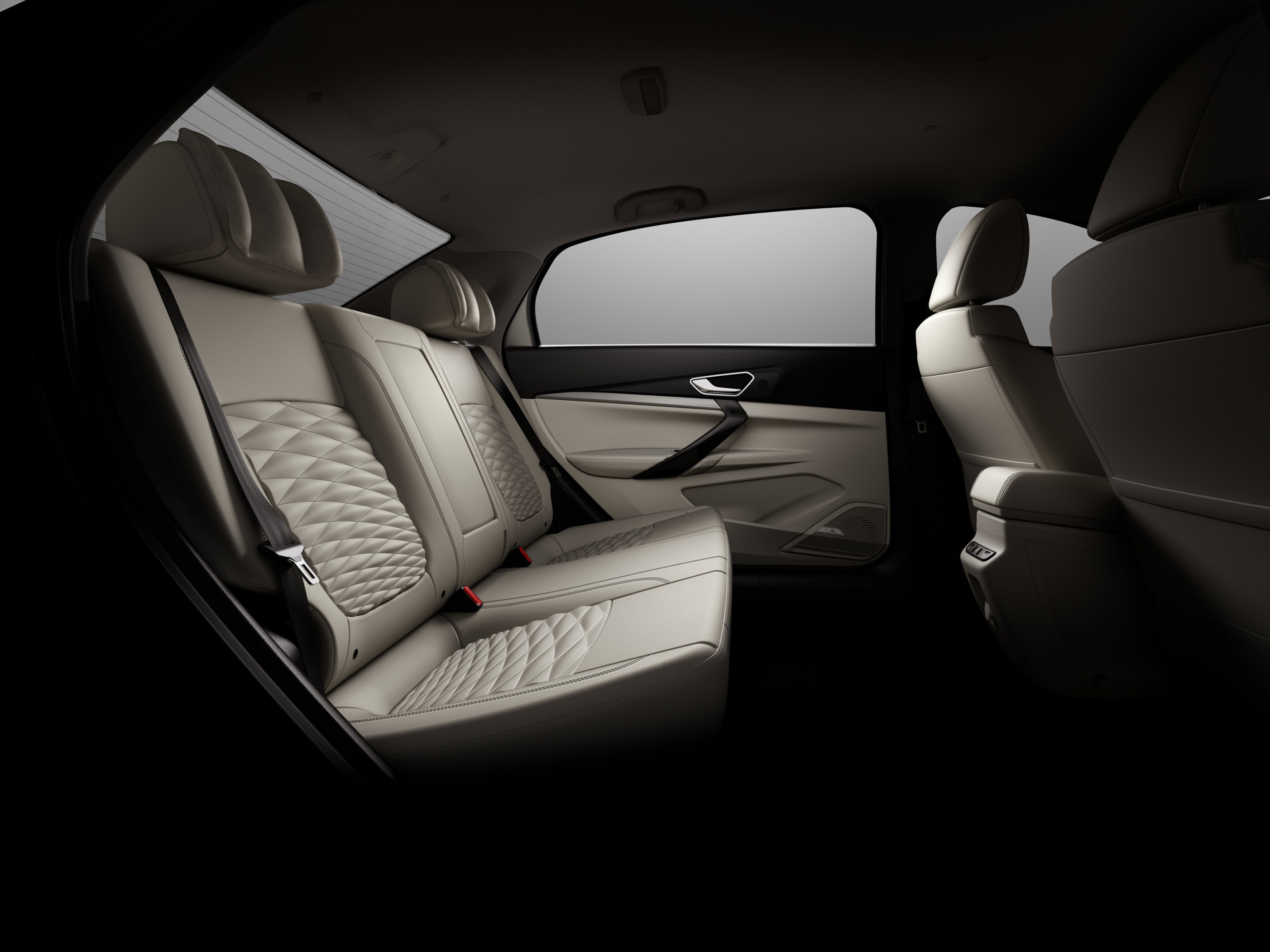 Салон Aura выполнен с использованием натуральной кожи, шумоизоляции и продуманной эргономики. Комфортно всем — и водителю, и пассажирам второго ряда, для которых предусмотрены подогрев, зарядки и мягкая посадка.